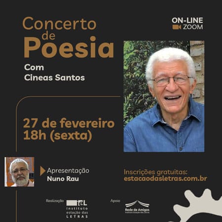 Além disso, qual a tecnologia espiritual que um poeta precisa desenvolver para criar poemas que sejam significativos? Em todos os encontros proporemos exercícios, leituras, análises e problematizações que fundamentarão o nosso fazer poético ou projeto literário.